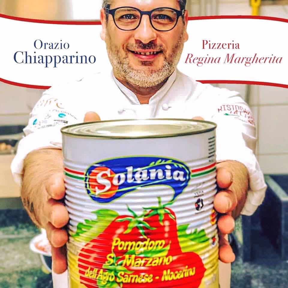 Orazio Chiapparino, siciliano d’origine, pugliese d’adozione ma pizzaiolo globe-trotter, nel suo tour europeo alla ricerca di materie prime d’eccellenza trova nella varietà del San Marzano il perfetto pomodoro da utilizzare nella sua pizzeria, per le qualità organolettiche dovute a caratteristiche territoriali uniche e molto diverse da quelle del suo cugino pugliese d’origine valliva che non gode delle proprietà vulcaniche del terreno vesuviano.