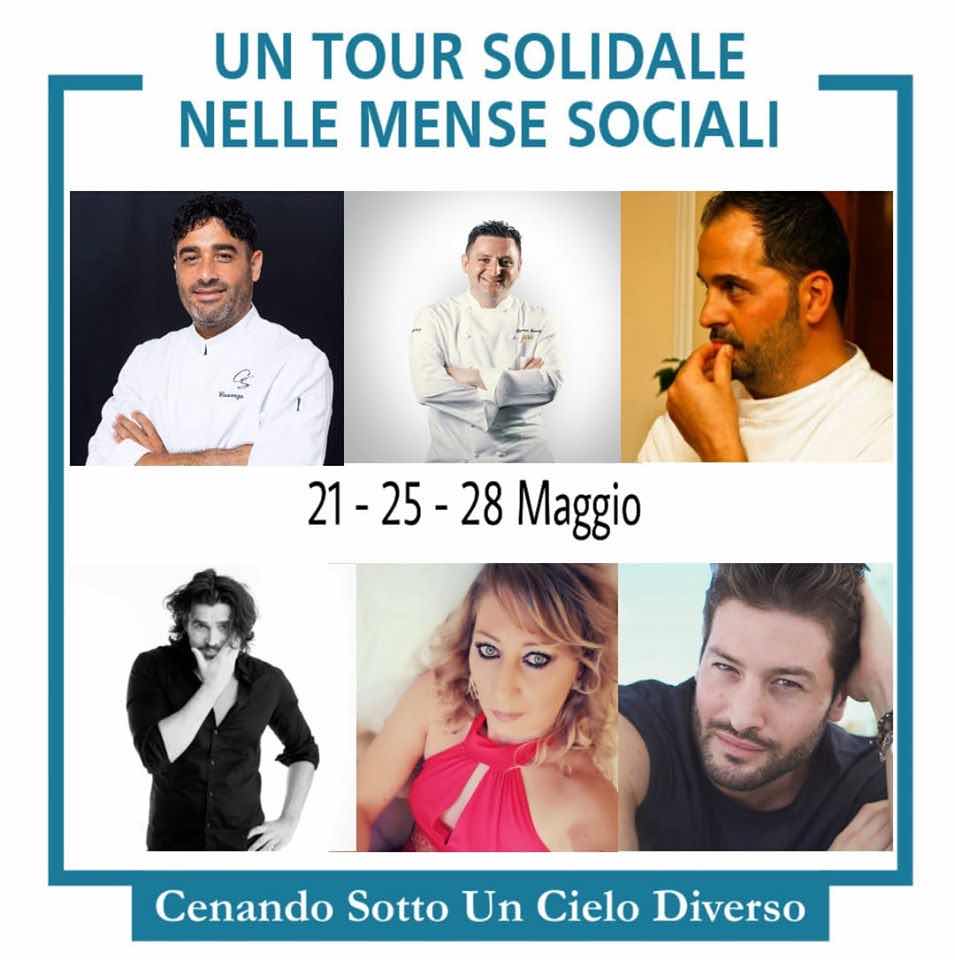 In questi mesi non sono mancate iniziative di solidarietà finalizzate a sostenere i soggetti meno fortunati. A tal proposito si stanno mobilitando personaggi famosi, imprenditori e chef stellati. A Napoli l’associazione “Tra Cielo e Mare”, presieduta da Alfonsina Longobardi, ha coinvolto tre chef stellati, due dinamici personaggi molto popolari e importanti imprenditori nel campo del food in un tour che li porterà a cucinare nelle mense animate da anni da realtà parrocchiali che si impegnano a dar da mangiare a persone meno abbienti. Cosi gli chef Crescenzo Scotti, Domenico Iavarone e Michele De Leo cucineranno un menù stellato a sei mani, utilizzando prodotti del territorio forniti dalle aziende partner dell’iniziativa, che sarà servito nei giorni 21, 25 e 28 maggio nelle mense sociali di Torre del Greco, Napoli e Pompei. Francesco Albanese – attore e regista, una delle colonne portanti del programma “Made in Sud” – e Ciro Torlo – modello e attore, ex Mister Italia – interverranno in tali occasioni per salutare i presenti.