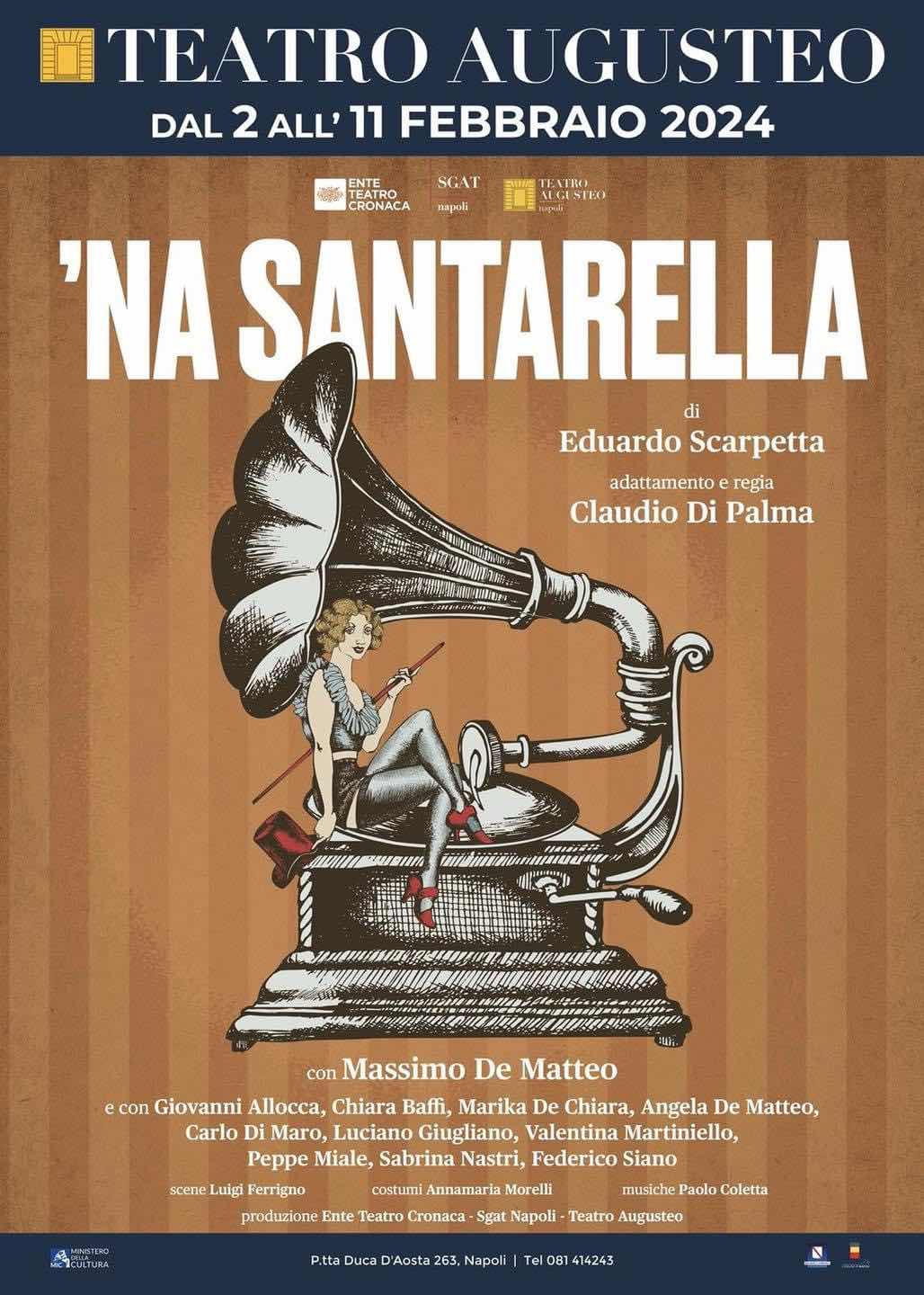 Un grande debutto a Napoli, con la commedia di Scarpetta ottimamente riproposta sulle scene da Massimo De Matteo per l’adattamento e la regia di Claudio Di Palma. Una commedia del 1889 che portò a Scarpetta un grandissimo successo di pubblico tanto che con i proventi fece costruire una villa al Vomero che chiamò La santarella, nell’attuale via Luisa Sanfelice, strada che i vomeresi chiamano ancora la Santarella.