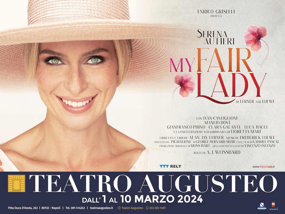 My fair lady”, la favola più rappresentata e premiata al mondo, torna finalmente in Italia al teatro Augusteo (Napoli, Piazzetta duca d’Aosta 263) con Serena Autieri protagonista, da venerdì 1 a domenica 10 marzo, grazie alla produzione Rely di Enrico Griselli, affermata nella realizzazione di grandi classici e opere inedite. Da sempre considerato il musical perfetto, “My Fair Lady” con le sue melodie universali, le tematiche attuali e le sognanti ambientazioni londinesi di inizio secolo, conquista da settant’anni i teatri di tutto il mondo.