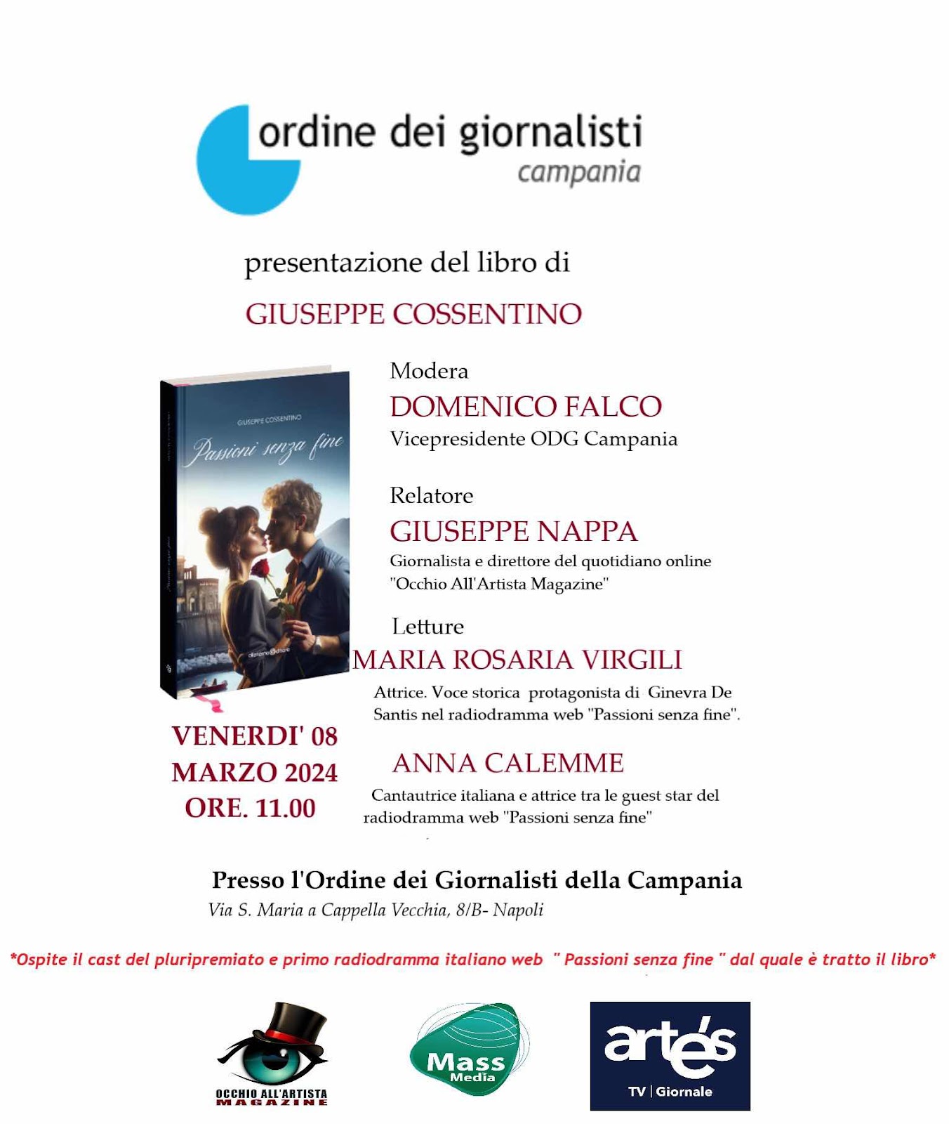 A Napoli si presenta “Passioni Senza fine” il romanzo di Giuseppe Cossentino presso la sede dell'Ordine dei giornalisti della Campania