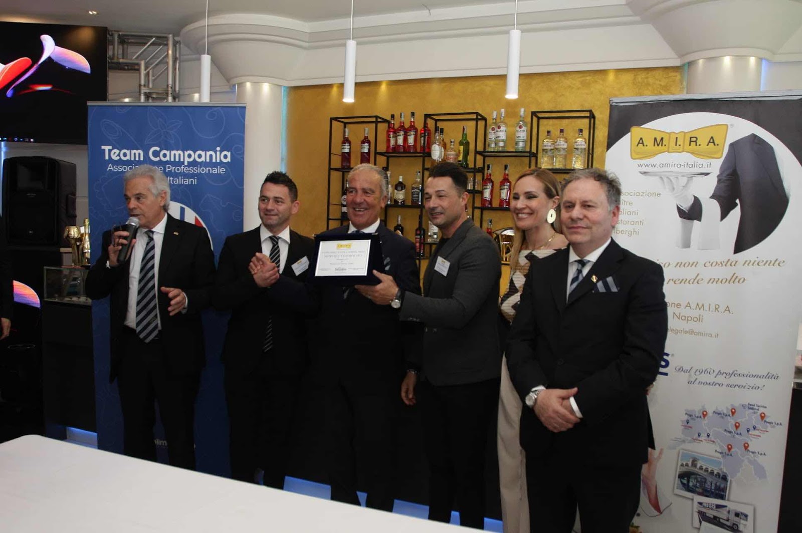 Il Presidente Valerio Beltrami ha consegnato una targa dedicata alla location ospitante “Villa Lucrezio” e diplomi di Benemerenza ai direttori della struttura Giuseppe Fraia e Raffaele Cuccurullo, a Betty Bassolino e al capo-barman Lino Marchese.