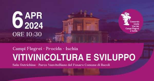 Vitivinicoltura e Sviluppo, il convegno del Consorzio Tutela dei Vini Campi Flegrei e IschiaSabato 6 aprile 2024 alle ore 10.30 si terrà il convegno dal titolo Vitivinicoltura e Sviluppo, in programma presso la Sala Ostrichina del Parco Vanvitelliano del Fusaro a Bacoli (NA), che illustrerà due relazioni sul valore storico enologico dell’uva a bacca bianca dei Campi Flegrei, nonché sulla valorizzazione dei vini flegrei e dell'isola di Ischia.