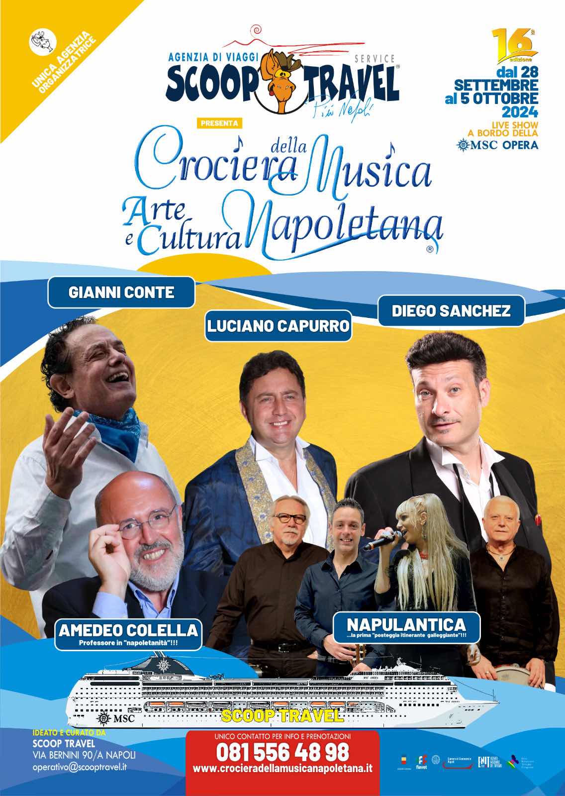 Questa straordinaria crociera, ideata da Scoop Travel a bordo delle navi della flotta di MSC Crociere, continua con l’essere l’unico viaggio indimenticabile alla scoperta della musica, dell’arte e della cultura napoletana. Uno