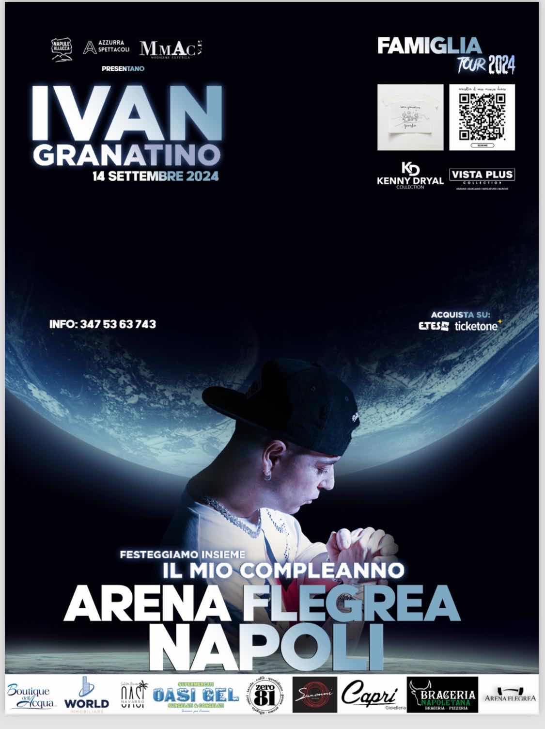 “Sarà una grande festa che condivido con tutte le persone che mi hanno portato fin qui - confida Granatino- ho voluto fortemente fare una festa per tutte le persone che mi hanno regalato un sogno, ho chiamato il disco FAMIGLIA e per me famiglia è tutta la gente che ha sempre supportato la mia musica, sarà un evento con tanti ospiti, tante sorprese e tanti effetti speciali. - conclude Granatino - il concerto più grosso che ho mai fatto e realizzato in vita mia, ci auguriamo solo che sarà la data zero e che ci porterà fortuna e in giro per l’Italia per tutto il 2024. Quella di sabato sera sarà una grande festa, per il mio 40esimo compleanno e lo festeggerò proprio sul palco, insieme al mio pubblico e alle persone che mi hanno sempre voluto bene. Lo definisco uno show a tutti gli effetti “un piccolo super bowl”.