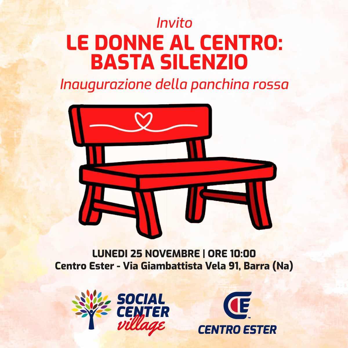 GIORNATA CONTRO LA VIOLENZA SULLE DONNE: LUNEDì MATTINA INAUGURAZIONE DELLA PANCHINA ROSSA DEL CENTRO ESTER