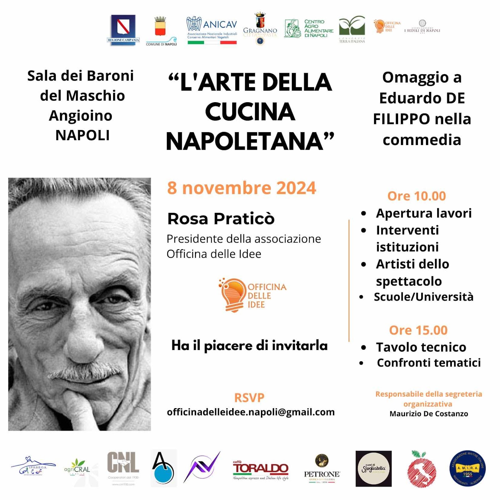 L’8 novembre, p. v. presso la Sala dei Baroni del Maschio Angioino, le associazioni “Officina delle Idee” e “I Sedili di Napoli ETS” ricordano, Il mito di Eduardo De Filippo a distanza di 40 anni dalla sua morte.