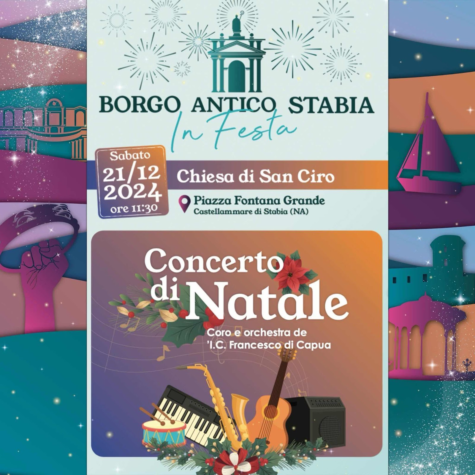 Borgo Antico di Stabia in Festa Musica, visite guidate, artisti di strada, animazione per bambini e notte bianca con spettacolo teatrale.