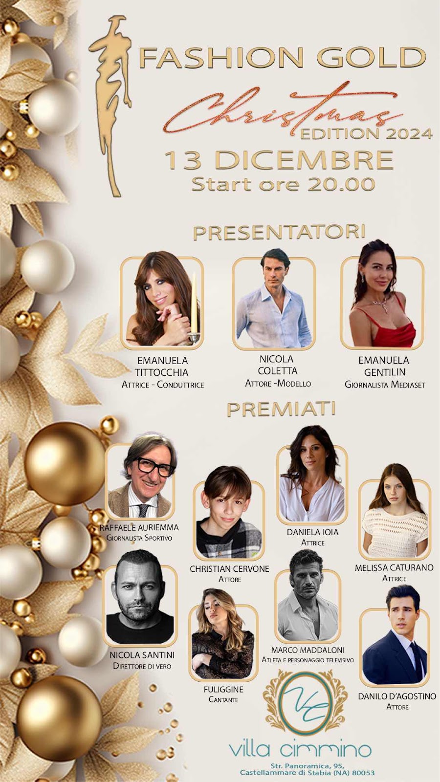 RIFLETTORI ACCESI SUL FASHION GOLD CHRISTMAS:VILLA CIMMINO DI CASTELLAMMARE DI STABIA OSPITA L’EVENTO IL 13 DICEMBRE 2024