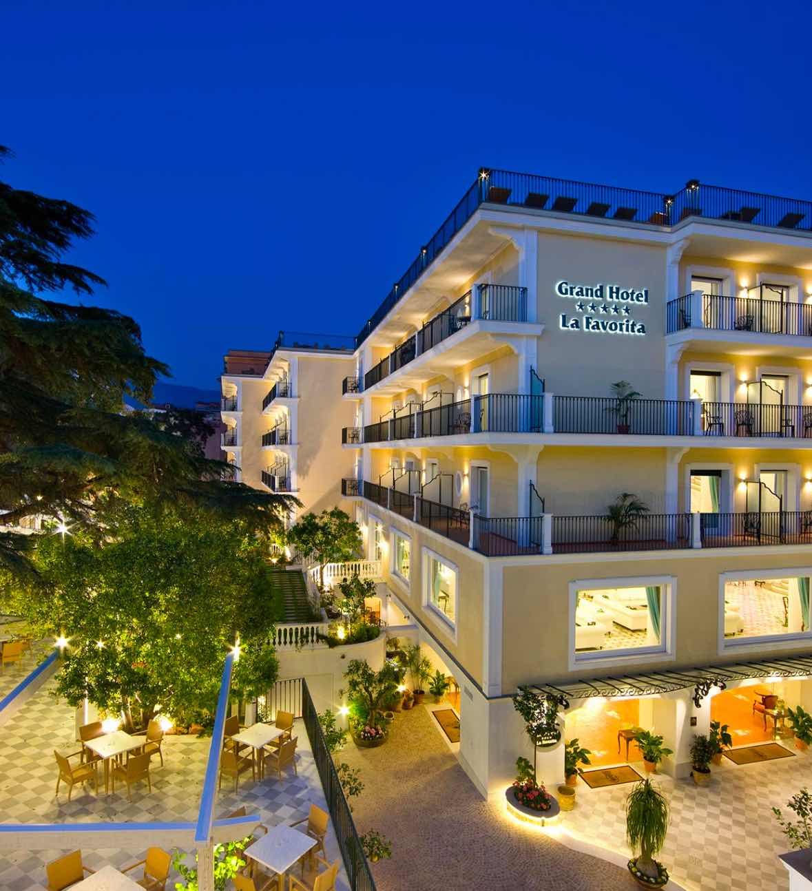 Cinque stelle situato in via Torquato Tasso, nel cuore del centro antico di Sorrento, con vista mare e circondato da ampi giardini, immerso nel profumo degli agrumi tipici della Penisola Sorrentina. Le 85 camere sono ampie e luminose, tutte isolate acusticamente e dotate di balcone, di cui 5 junior suite, dotate dei più moderni comfort. E’ già presente un ristoranteinterno con sala colazioni e lounge bar in terrazza con piscina. Il tutto vista mare. Si arricchisce da dicembre di una nuova offerta gastronomica con la creazione del ristoranteZEST e lo chef stellato Domenico Iavarone.