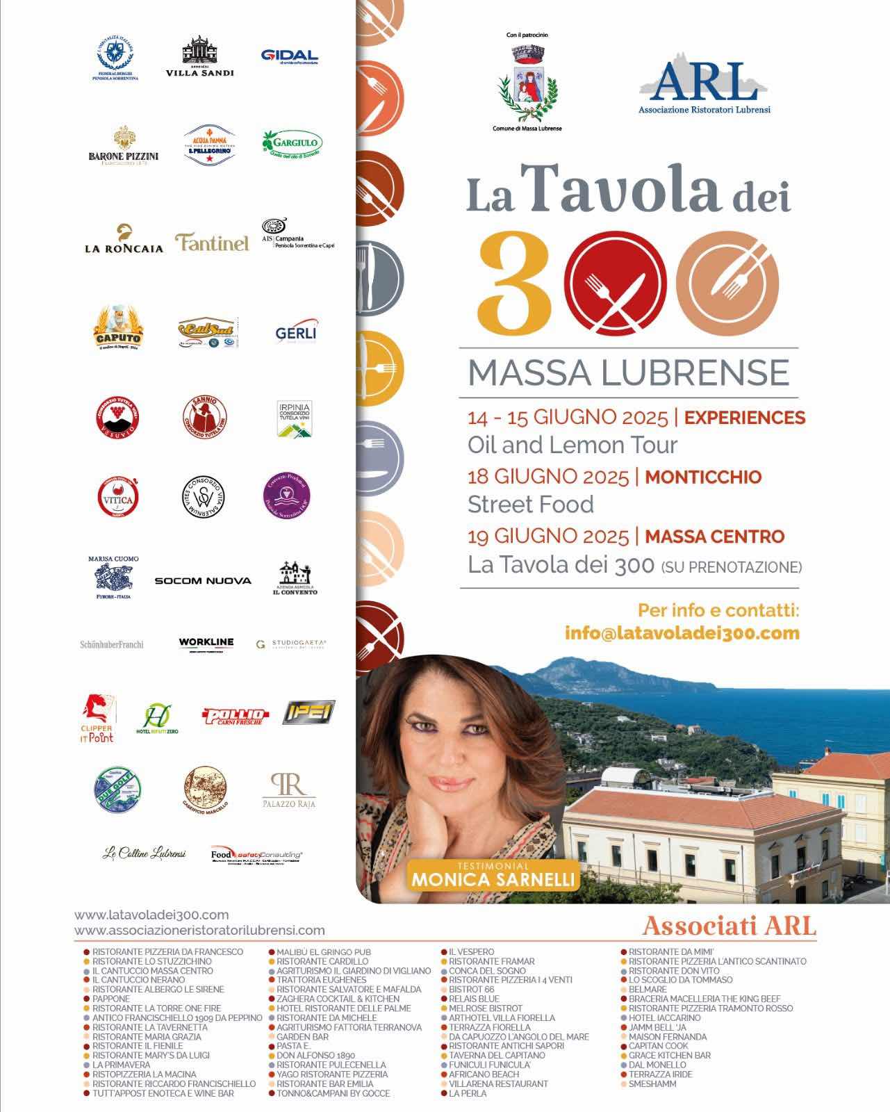 L’evento continuerà il 19 giugno alle ore 19.30 a Massa centro, appunto con la Tavola dei 300, con testimonial l’artista Monica Sarnelli.