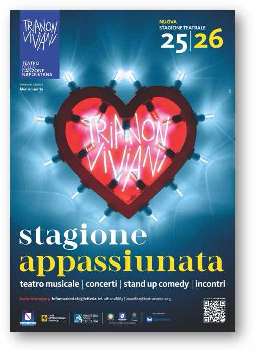 Questo cuore simboleggia «una stagione “appassiunata”, perché festeggiamo anche grandi autori», commenta il direttore artistico della storica sala pubblica di Forcella alla presentazione della prima parte del cartellone, che, da ottobre a dicembre, propone diciannove spettacoli di teatro, segnatamente musicale, concerti, stand up comedy e incontri culturali.