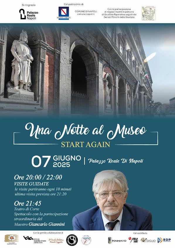 Una notte al Museo - Start Again” al Palazzo Reale di Napoli Apertura serale straordinaria con spettacolo: Guest star Giancarlo Giannini